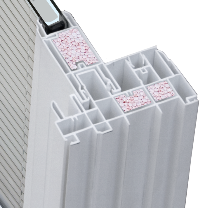 Thermally welded multi-chambered 5-5/8" main frame provides superior strength and thermal insulation. Optional Foam Filled Insulated Extrusions provide better thermal efficiency.